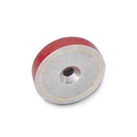 Disk-shaped retaining magnets have a flat design and provide temporary or portable attachment in a reliable and efficient manner.